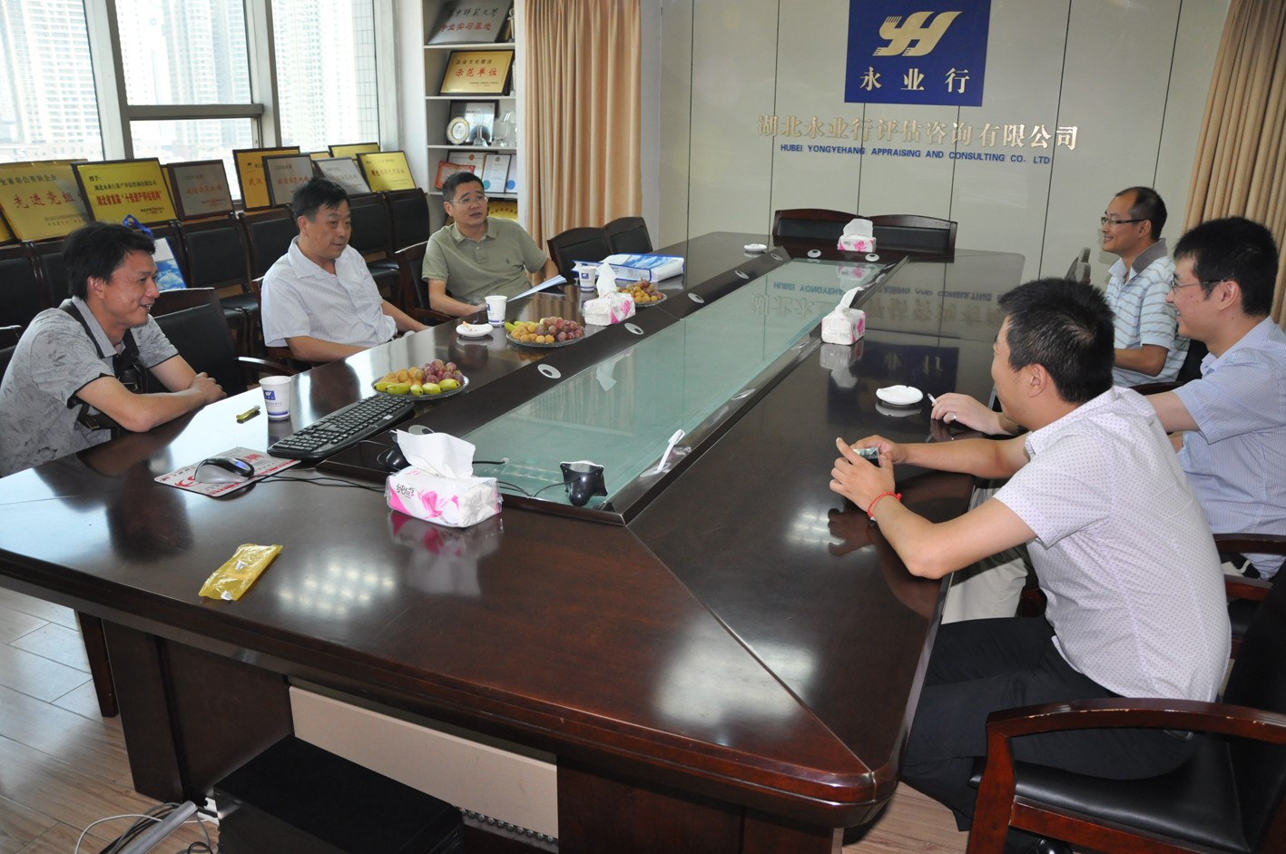 7月11日,长江水利委员会(简称“长委”)机关财务局丁自力处长、魏波科长莅临永业行考察交流。 房地产评估二部副总经理何才丽、经理涂晶、助理经理艾妮热情接待了丁处长一行。丁处长、魏科长观看了永业行专题片,何总就内部资产核定资产量这一项目相关技术方案作了汇报,双方就该项目的评估范围和技术方法进行了细致交流。丁处长对永业行技术人员前期开展的调查工作及制定的项目方案表示充分肯定,并表示希望与永业行进一步拓宽业务合作领域。