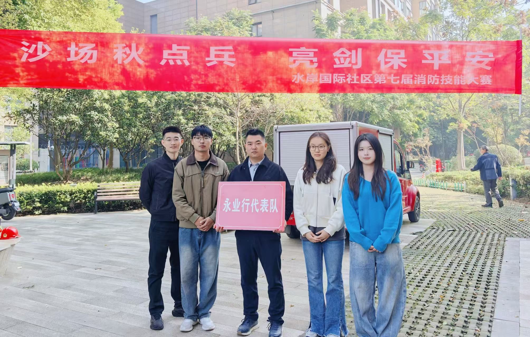 永业行组织参加水岸国际社区第七届消防技能大赛活动 2025-11-06         2025年11月5日,武昌区徐家棚街道水岸国际社区举办“沙场秋点兵·亮剑保平安”第七届消防技能大赛。本次活动旨在通过实战化比武,增强辖区义务消防队的业务技能与消防安全意识,提升火场应急处置和灭火救援的实战能力。永业行代表队积极参与消防比武,凭借扎实的技能和默契的配合取得优异成绩。 大赛现场,来自社区内物业公司及辖区单位的6支代表队共30余名选手同台竞技,展开了激烈的角逐。比武共设置三个核心环节:消防水带连接、消防服穿戴、灭火器使用。比赛中,永业行参赛选手以两人为一组,配合默契、动作娴熟,在各个环节中争分夺秒、全力以赴。整个赛场紧张热烈、节奏紧凑,各队伍奋勇争先、顽强拼搏, MORE