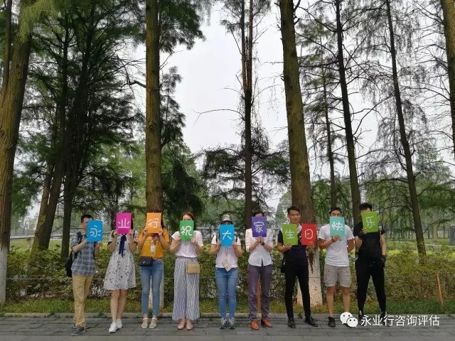 2017年6月16日,“永业行6月员工生日会”在东湖绿道举行。来自地产顾问事业部、地矿事业部、投资咨询事业部、环境事业部、恩施分部、服务部门的10余位同事参加了本次生日会。 为进一步推进团队建设、改善员工福利,让员工感受永业行大家庭的温暖,公司从2017年中期开始每月以不同形式为员工举行一次生日会,当月的寿星们齐聚一堂,欢声笑语、其乐融融。 生日会上,大家进行了吹蜡烛、切蛋糕、抽生日卡片的庆祝环节,同时开展了“双人背部运气球”、“你画我猜”等小游戏以及35公里的绿道骑行活