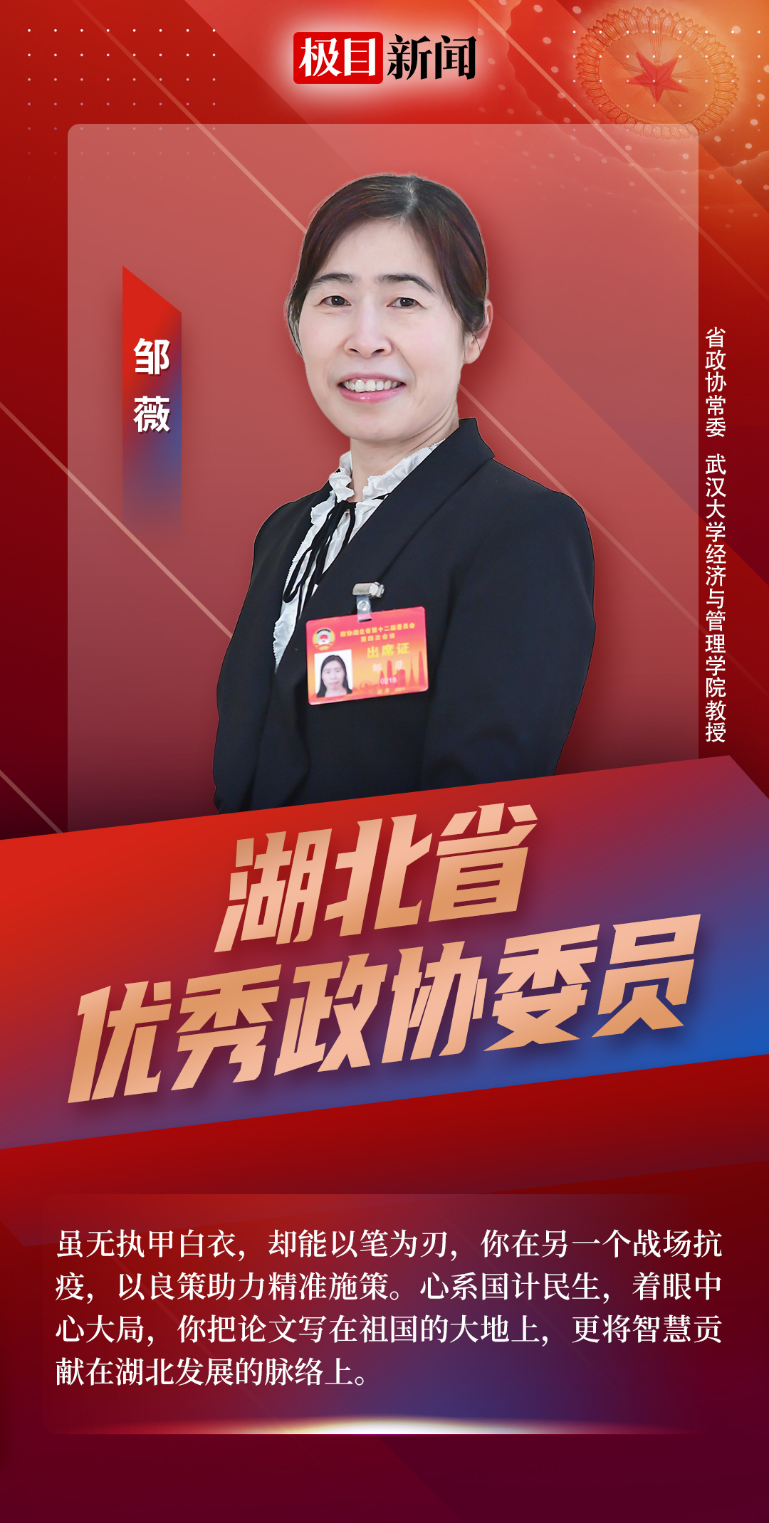 为国履职,为民尽责。他们,努力干出新时代政协委员新样子,为湖北加快“建成支点、走在前列、谱写新篇”积极贡献政协智慧和力量。