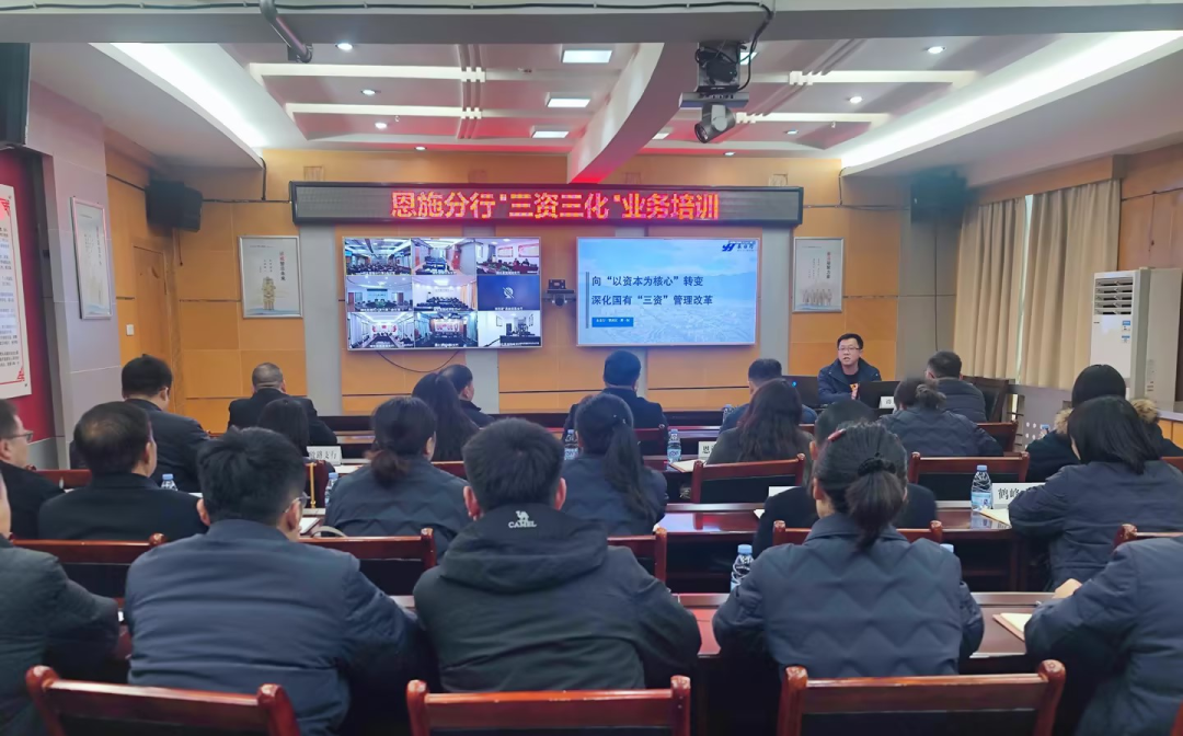 2025年12月2日,中国工商银行恩施分行组织召开“三资三化”专项业务培训。会议由恩施分行副行长谭昊主持,永业行鄂西区技术中心副总监谭一钊应邀作“向‘以资本为核心’转变,深化国有‘三资’管理改革”专题授课。